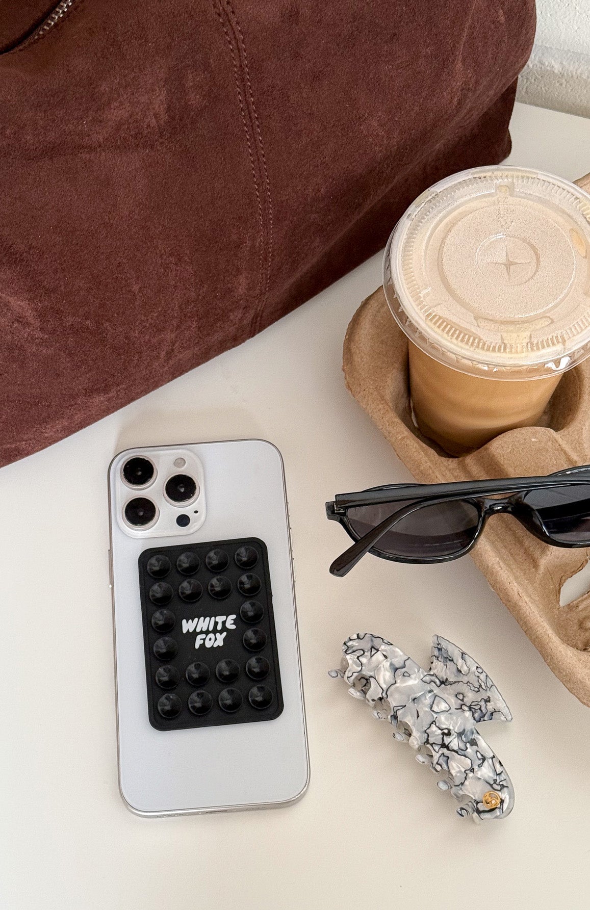 Whether you're snapping selfies, recording workout sessions, or applying makeup, the Calling My Cellular Phone Grip Black is your bestie! Features front sided suction cups, flat adhesive back and printed White Fox text centre front. We are obsessed!