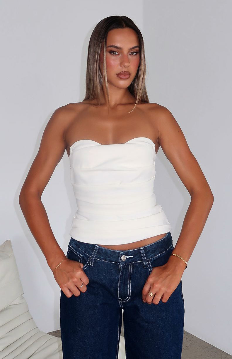 Turn heads in the best possible way with the City Streets Bustier Off White. Features a strapless design with built in bra and bust underwire, gathered detailing, and invisible back zipper and clasp closure. We love this paired with low rise jeans and a bold red lip!