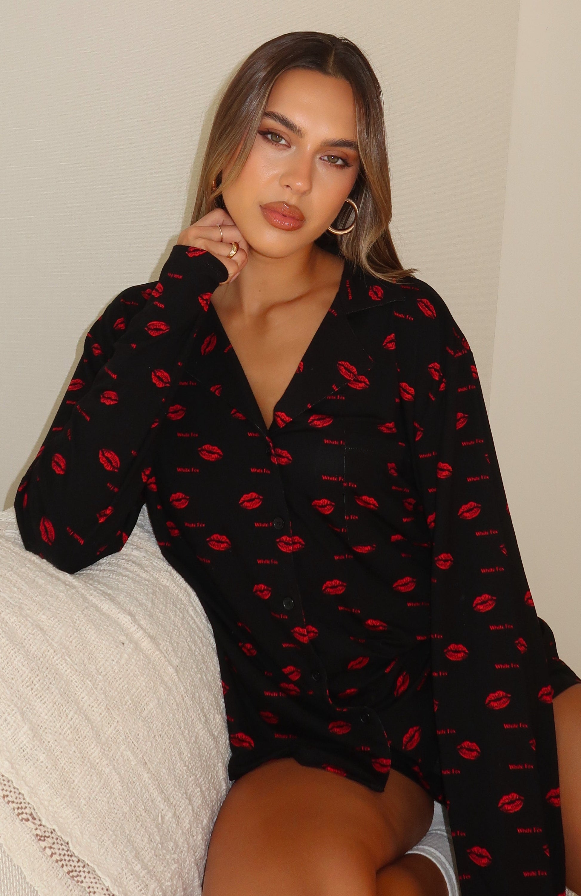 Get cute and cosy in the Dreamscape Long Sleeve Pyjama Set in Cherry Kisses. Top features a collar neckline, long sleeve and button closure down centre front. Bottoms features a thick elasticated waistband and stretch fabrication for an easy slip on and off. Pair with snug boots and enjoy the night binge watching your fav tv shows!