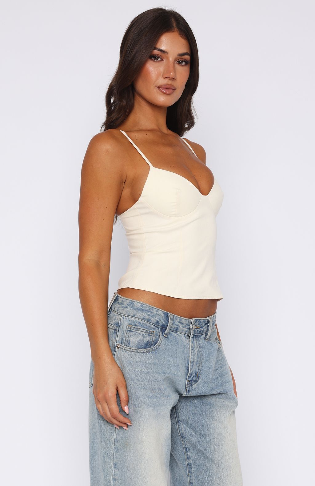 The Have A Nice Day Top in Off White brings a sense of elegance to an understated top. Features adjustable spaghetti straps, moulded bust cups with fixed padding for support and invisible zipper with hook and eye closure on side. Pair back with denim jeans and simple kitten heels for the perfect long lunch fit!