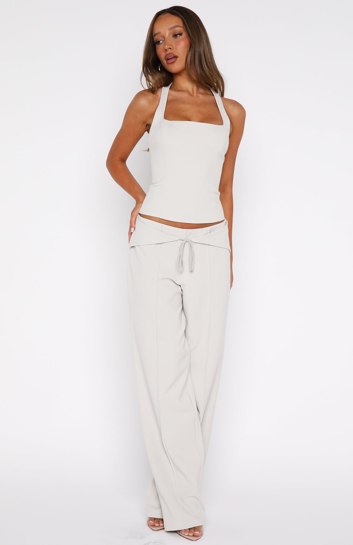 Own the moment in our He Said She Said Pants in Bone! Tailored with a hook‑and‑bar closure and front zipper, they feature a pleated wide‑leg silhouette that drapes beautifully. Unlined for a lightweight feel, these pants are finished with a built‑in tie belt at the waist, blending structure with effortless style. Style with the matching He Said She Said Bustier and kitten heels for a look we love!