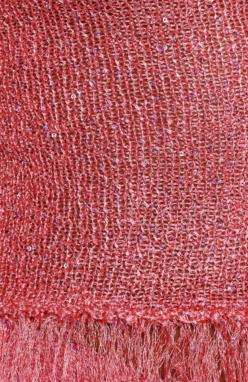 A vacation essential - introducing the Let Me Cool Off Top in Guava! Features thick shoulders straps, high round neckline, frayed hemline and subtle sequins threaded throughout the fabrication that catch the light from every angle. Feel your best by pairing with the matching Let Me Cool Off Shorts in Bubblegum.