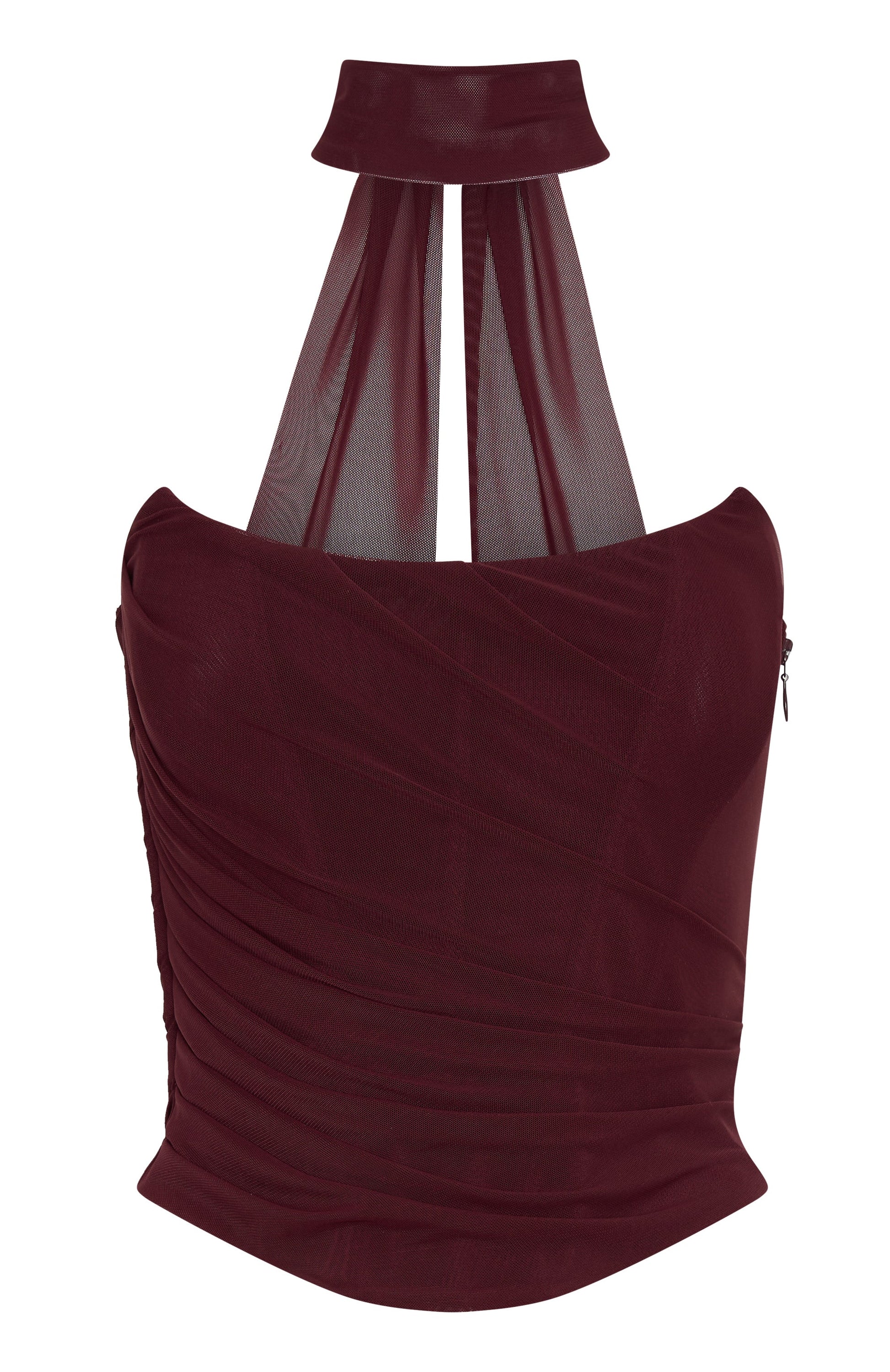 The Lovers Lane Strapless Bustier Burgundy is our ultimate dream come true! Features a neck tie design, strapless neckline, boning in bodice, invisible side zipper and clasp closure, cropped length and lined. Style with the Loving You Maxi Skirt Burgundy for a swoon worthy look!