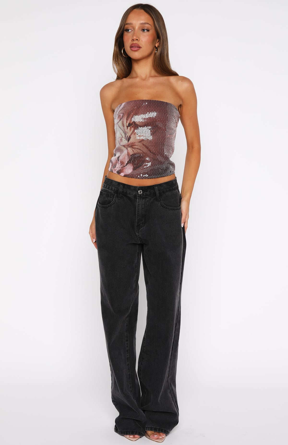 Enter every room with confidence in the Make It Real Strapless Sequin Bustier in Floral Shadows. This fully lined bustier brings the drama with sequin fabrication that catches the light, a strapless design supported by grip tape, and a secure back zipper with clasp closure. Pair with low-rise jeans and kitten heels for a playful combo that promises all eyes on you.