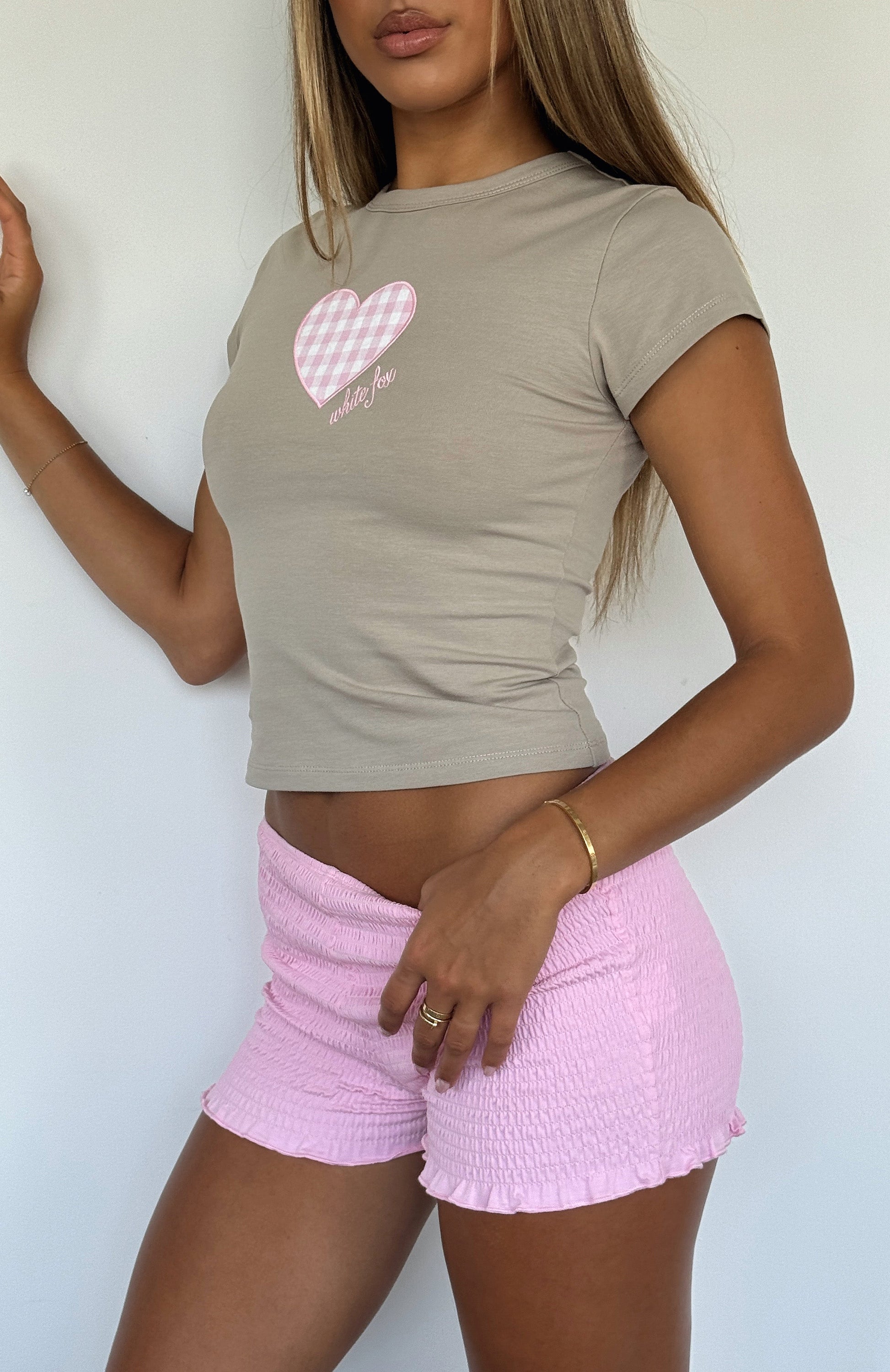 The Rainy Days Baby Tee Moon will have you feeling the sunshine all summer long. Featuring a high cut neckline, figure-hugging fit, cropped length, short sleeves, centre front logo detailing and stretch material. Pair with booty shorts for a fun weekend look!